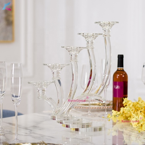 Modern Custom Crystal Candle Holder Glass Candelabra for Holiday Decoration