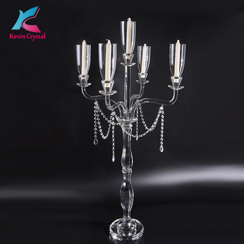 K-1156 Tall Wedding Table Crystal Candelabra Centerpiece 5 Arms Wedding Candelabra Centerpiece