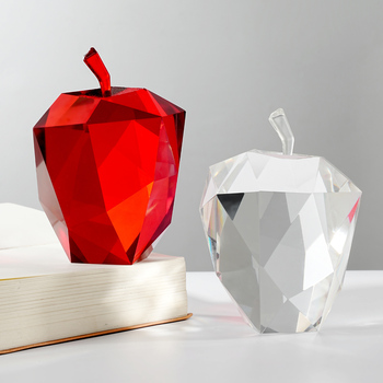 แก้วคริสตัลเหลี่ยมเพชรพลอยแอปเปิ้ลสำหรับบ้านโรงแรมสำนักงานของที่ระลึกที่ทับกระดาษบนโต๊ะของขวัญวันคริสต์มาส